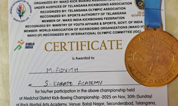 Golden Moment of Pride — Manthri Advith Shines Bright at WAKO Kickboxing Association, Medchal!